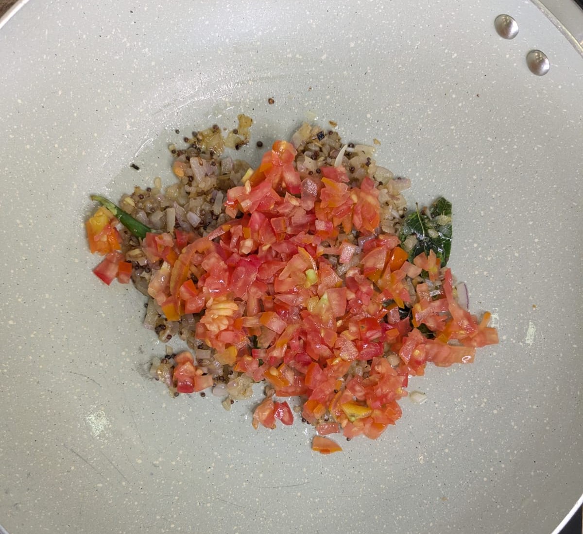 Add KD3 (Tomatoes) pack and cook for 2–3 minutes.