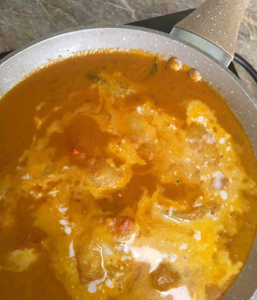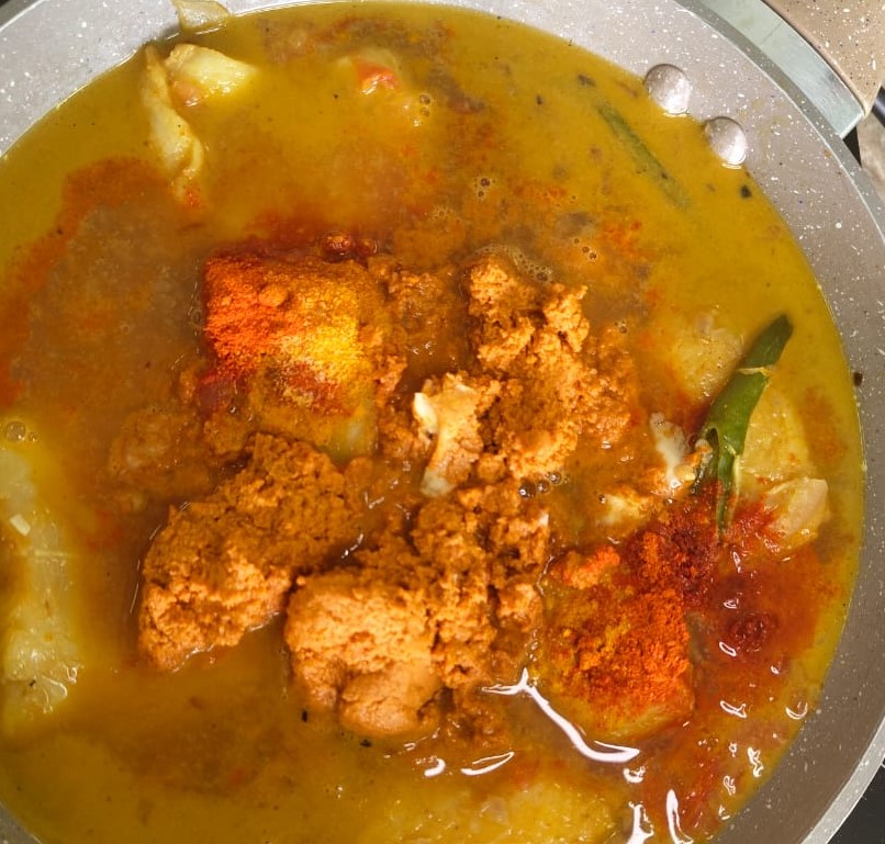 Add FG7 (Coconut Milk), bring it to a boil once again, and simmer for a minute before serving hot.