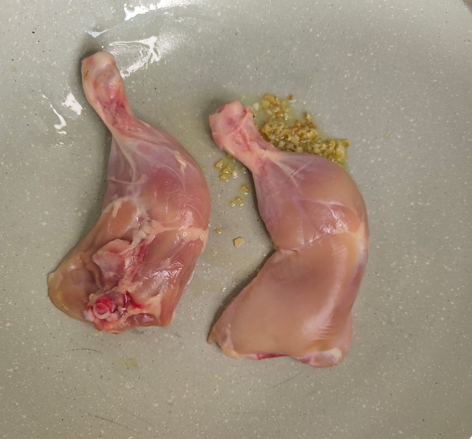 Heat a pan and add PO1 pack (Oil Pack) & add PO2 pack (chicken legs) and brown on both sides for 2-3 minutes on low flame. Remove and set aside.
