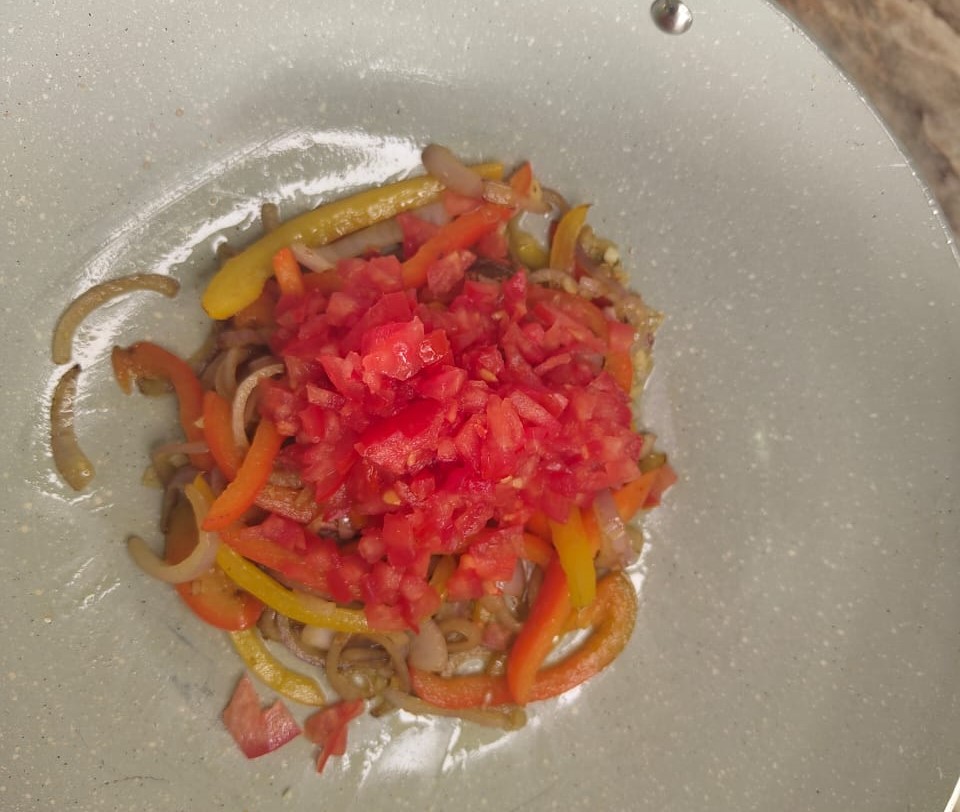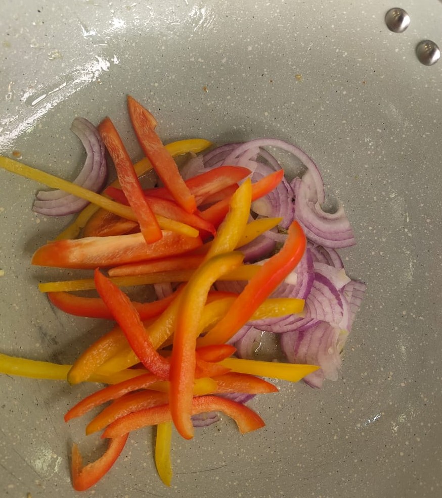 In the same pan, add PO3 pack (Onions) and PO4 pack (Bell pepper) sauté for 4-5 minutes until soft.