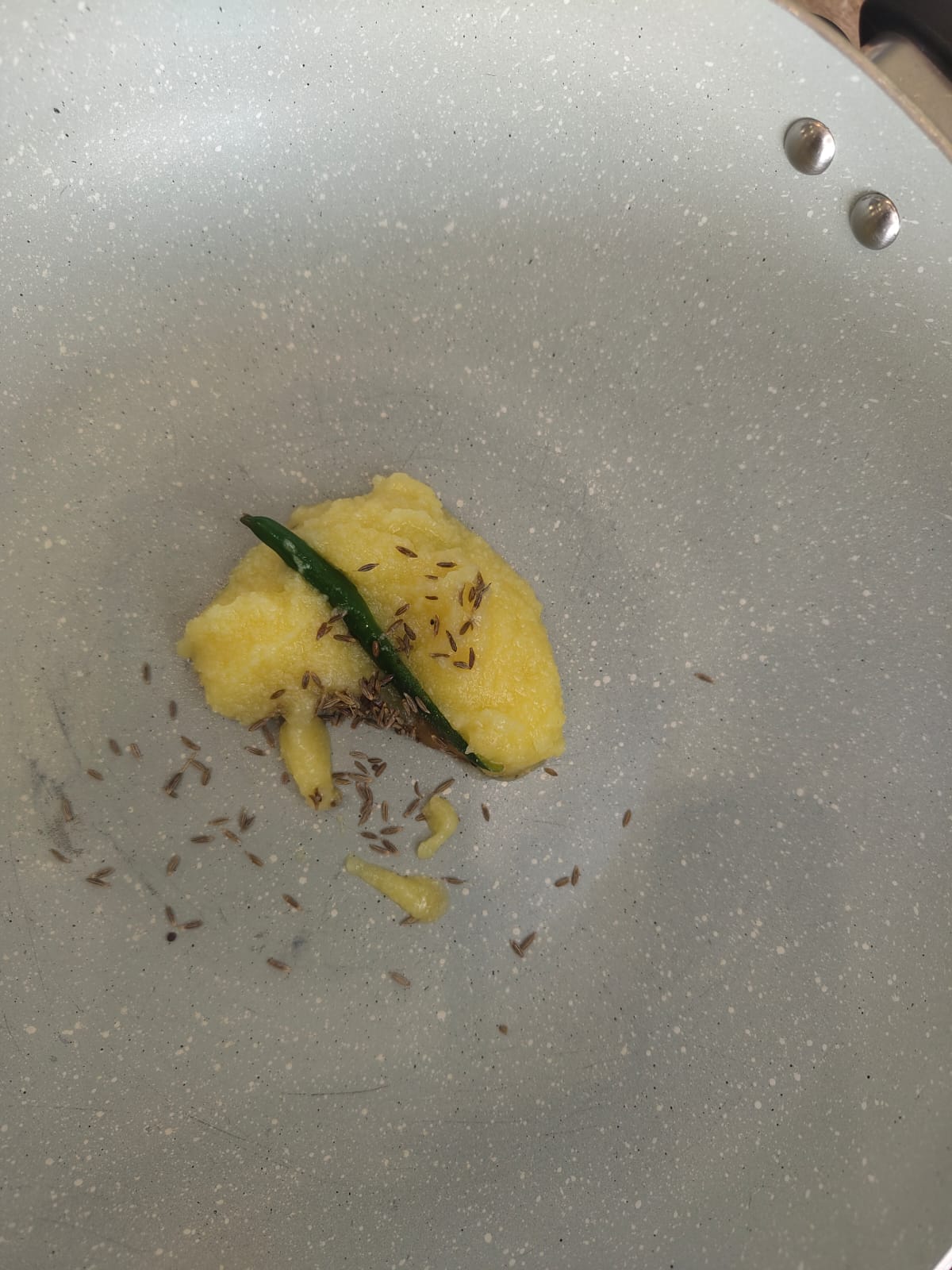 Add DT3 pack (Ghee pack) to the same pan and heat for a few seconds.