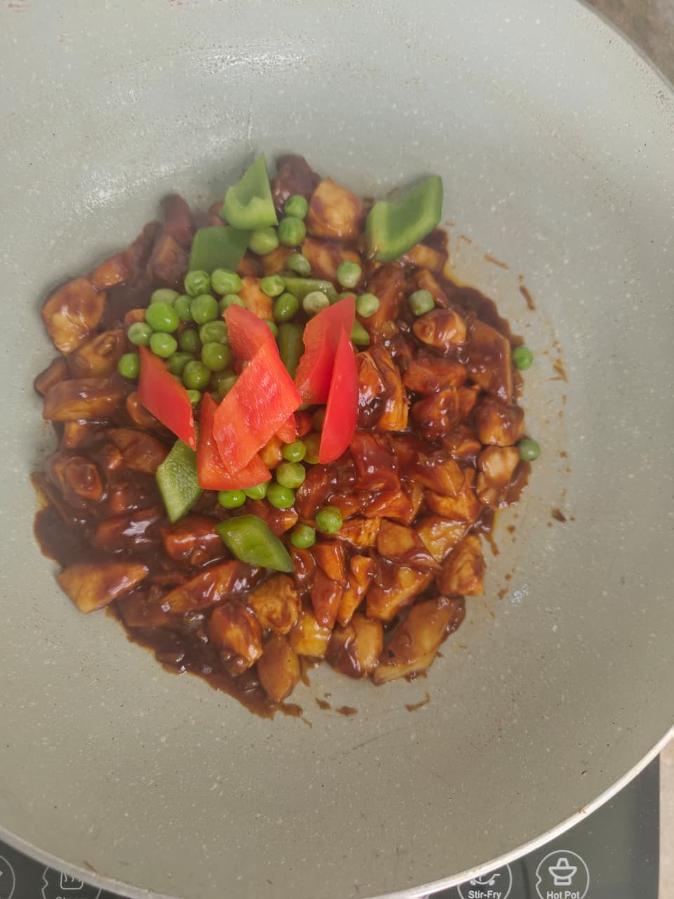 Add EU6 pack (Veggies), mix gently, and cook uncovered for 2 minutes until the sauce thickens.