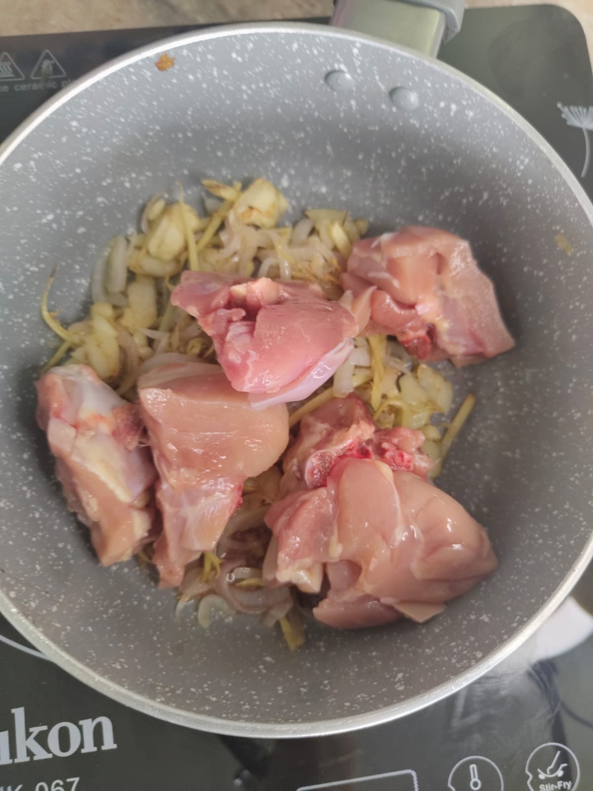 Add TG3 pack (Chicken) and sauté for 4–5 minutes until lightly browned.