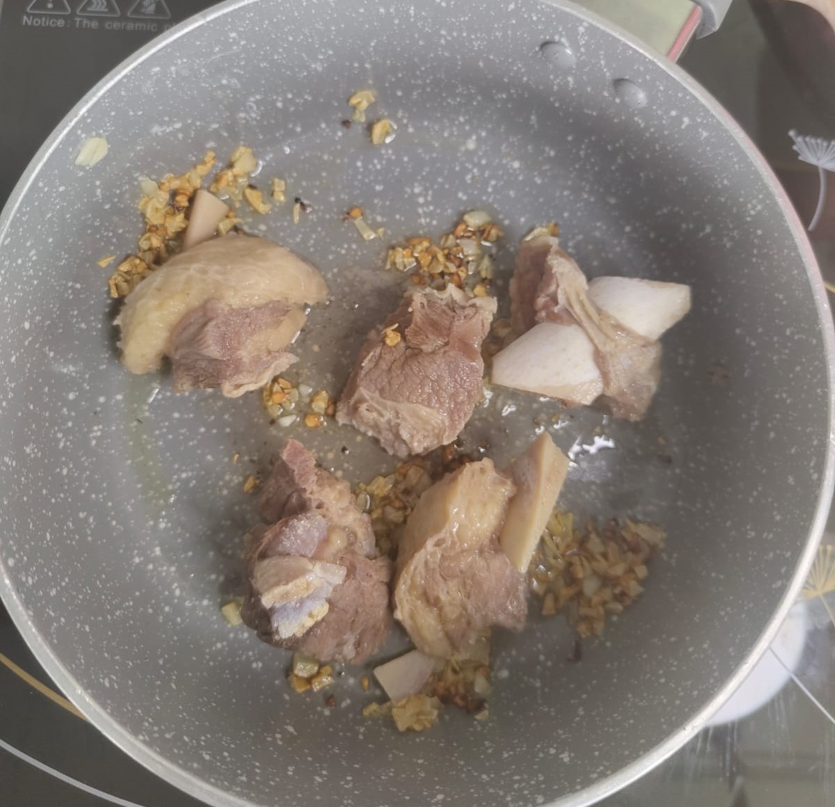 Add KB3 pack (Beef Rib) and sauté for 3-4 minutes until lightly browned.