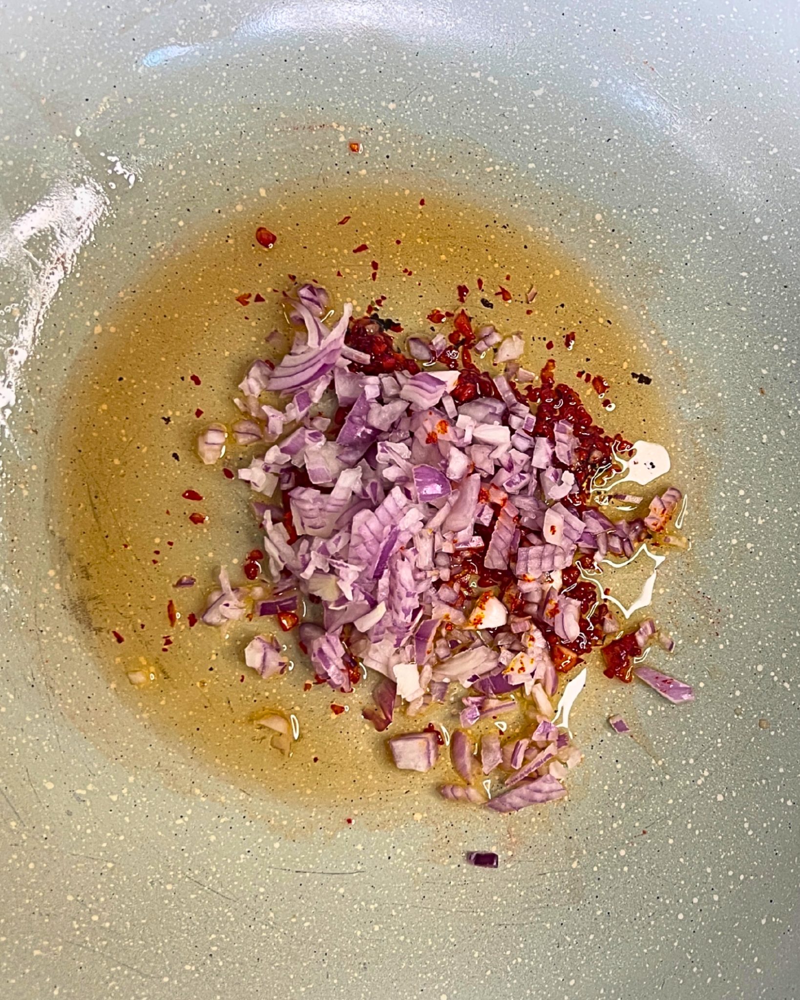 Add KE2 pack (Onion) and sauté until aromatic.
