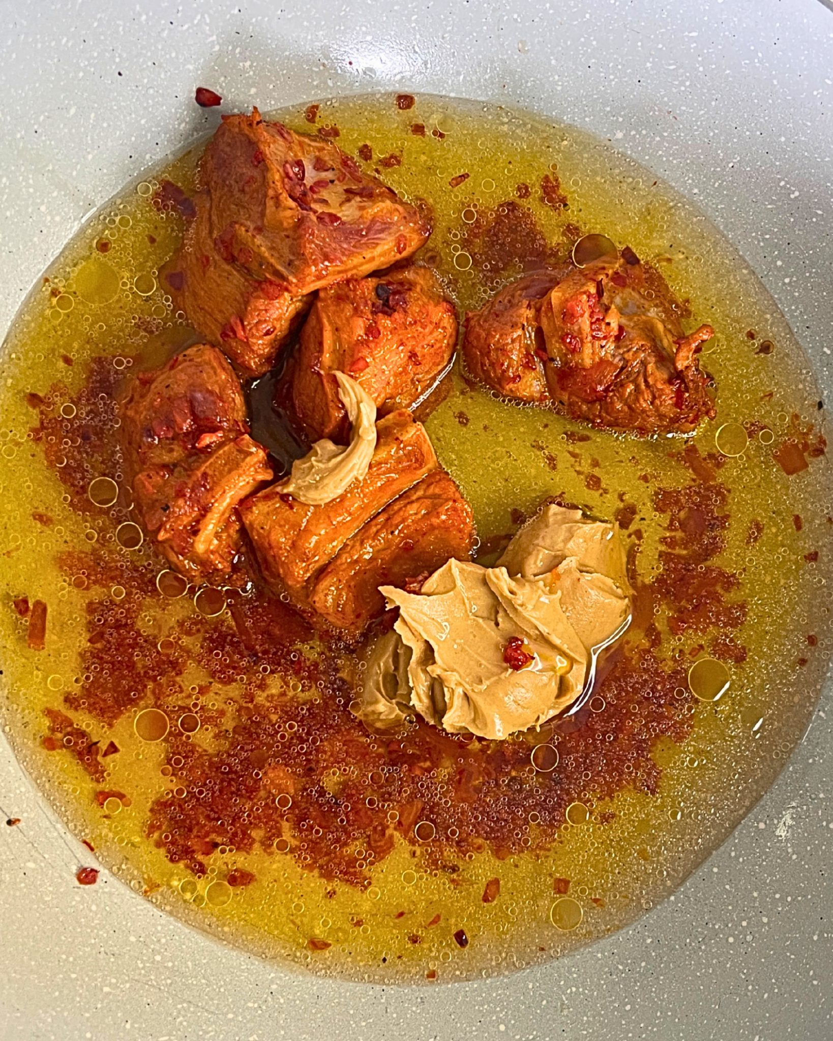 Add KE4 pack (Peanut Butter, Ground Toasted Rice) along with 1½ cups water; bring to a boil and simmer until slightly thickened.