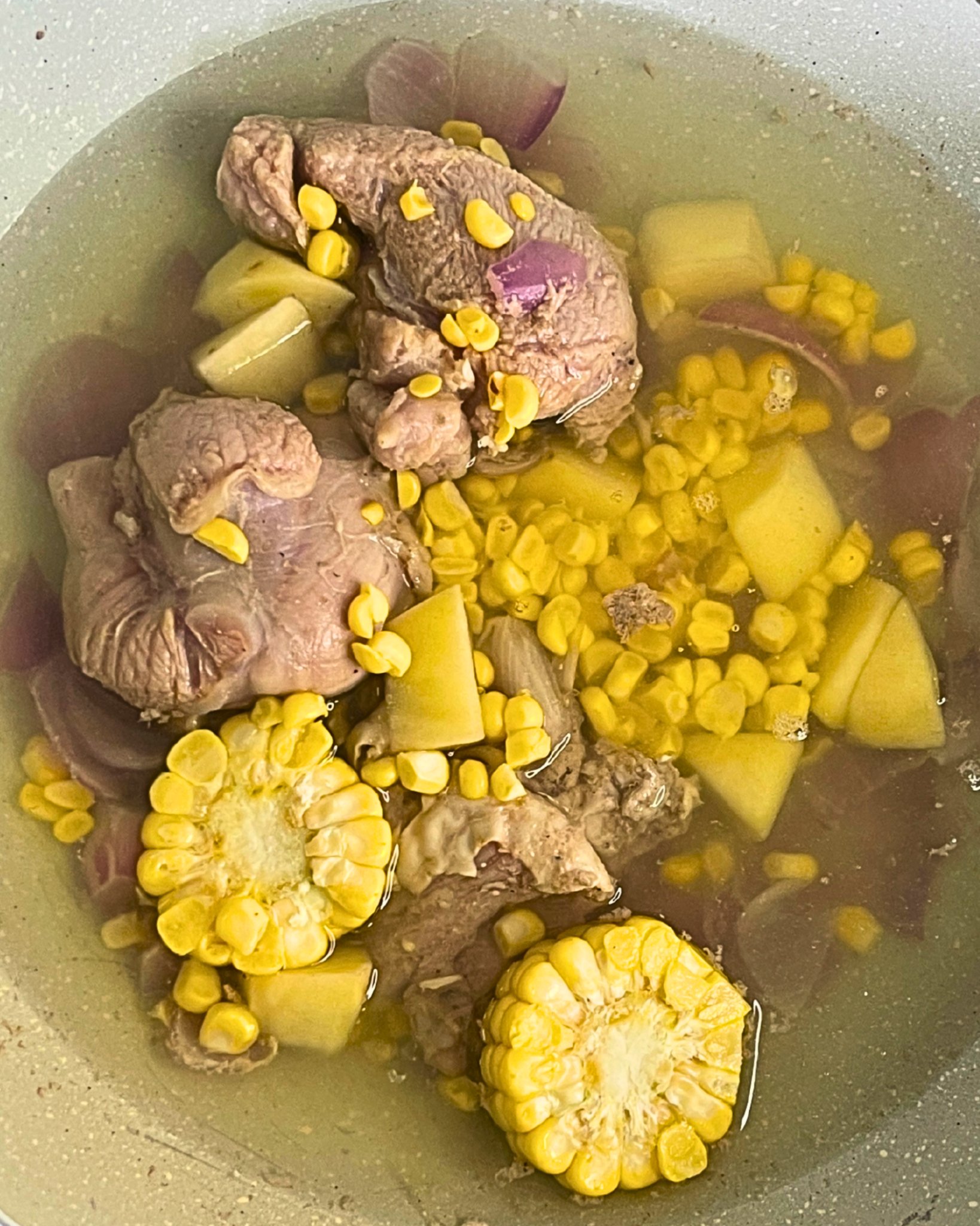Add NL3 pack (Potato, Corn), lower heat, and simmer for 15 minutes until tender.