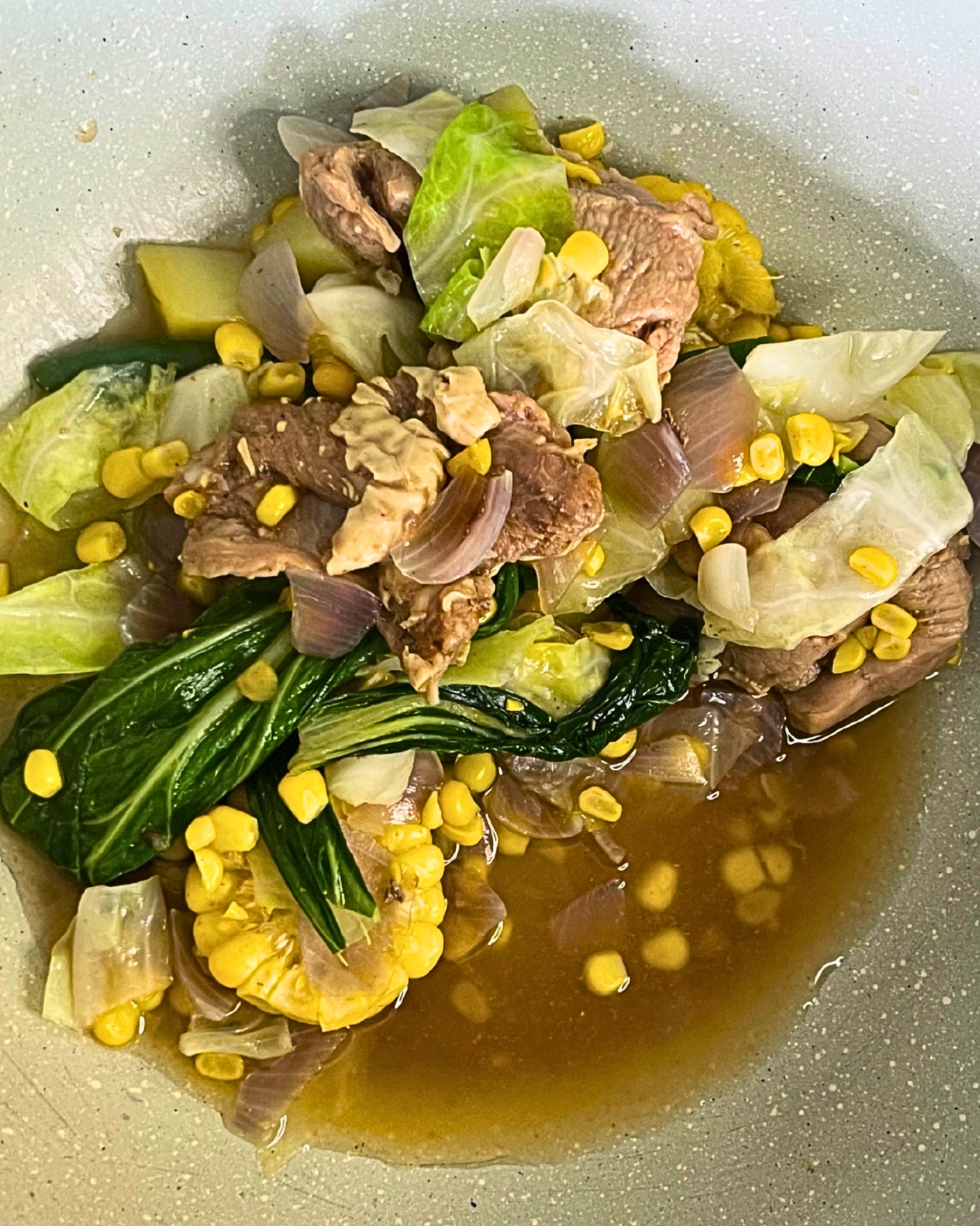 Add NL4 pack (Cabbage, Pechay, Green Beans) and cook for 3 minutes.