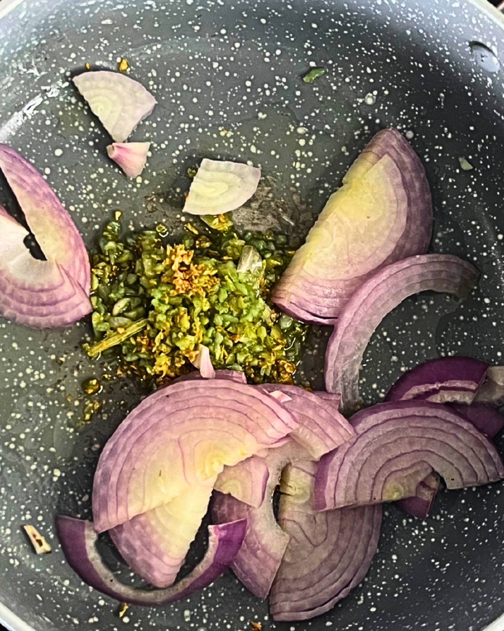 Add GG2 pack (Onion) and sauté for 1–2 minutes until aromatic.